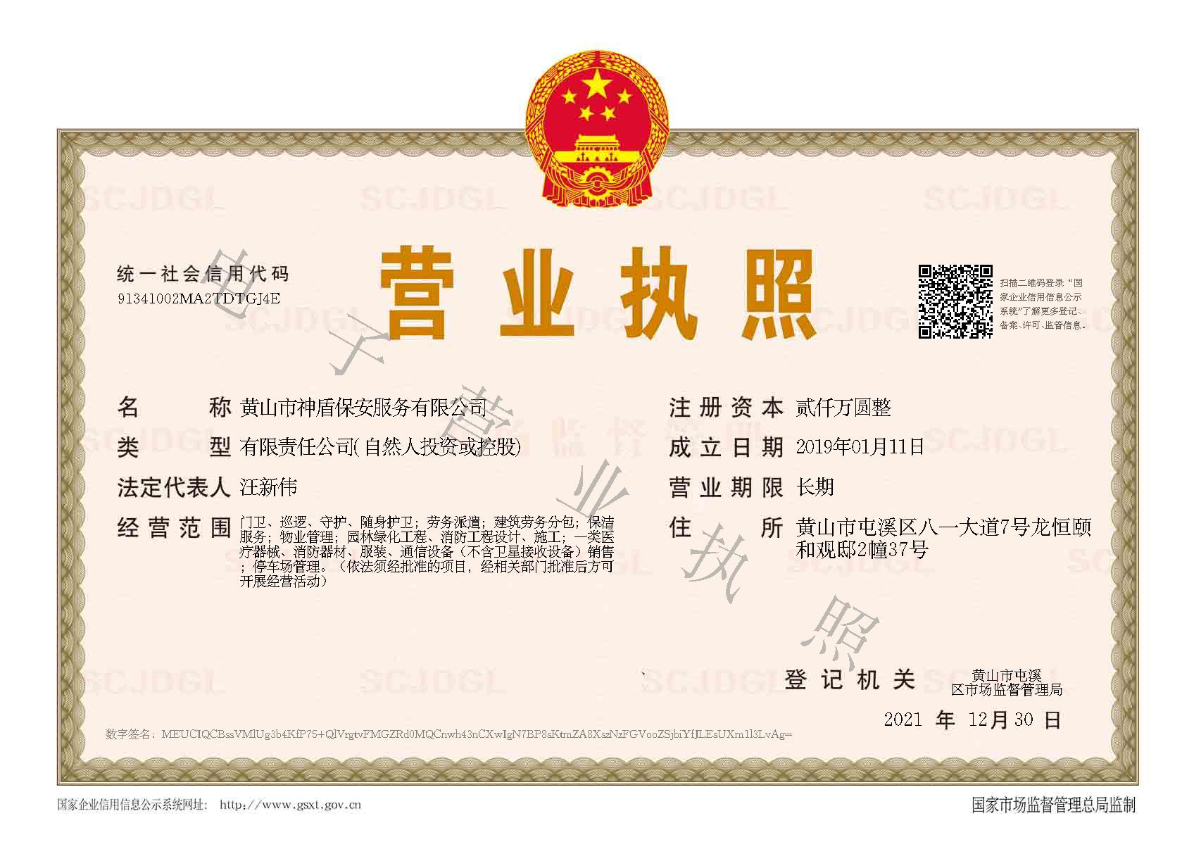 - 【黃山市神盾安全技術(shù)防范有限公司】成立于2012年2月,黃山神盾安全技術(shù)防范有限...